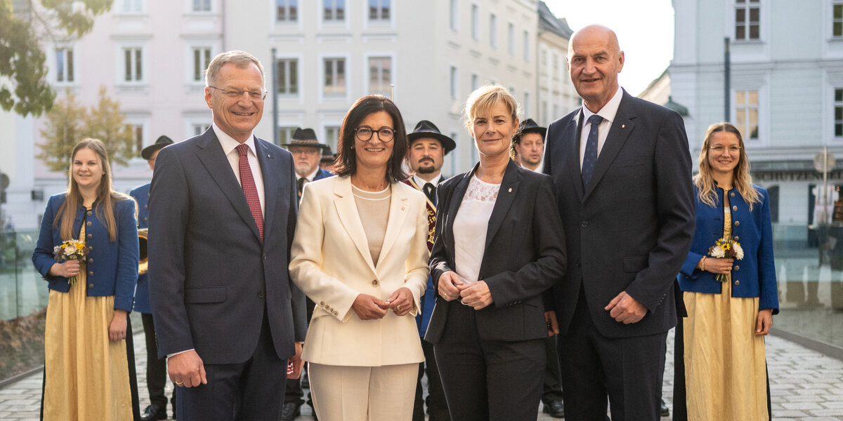 Christian Dörfel wurde vor wenigen Minuten als neuer Landesrat angelobt. Margit Angerlehner folgt ihm als Klubobfrau nach. Mit ihr erhält das OÖVP-Spitzenteam eine zusätzliche Frau. Doris Staudinger zieht neu in den Landtag ein.